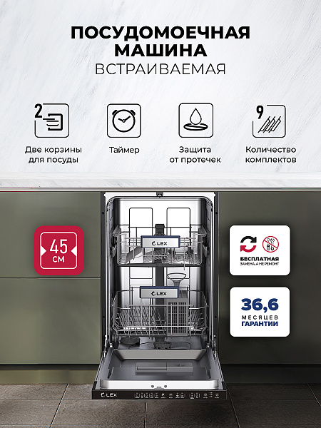 Посудомоечная машина LEX 4552N создана для тех, кто ценит комфорт и эффективность. Эта полновстраиваемая модель идеально подходит для небольших кухонь, предлагая функциональность, которая облегчает повседневную жизнь. Две просторные цветные корзины позволяют удобно размещать разнообразную посуду, включая большие кастрюли и стеклянные бокалы.
