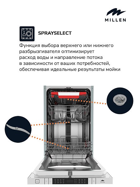 Три корзины позволят разместить посуду равномерно на всех уровнях, таким образом вода будет доставать до самых отдаленных «мертвых» углов и качество мытья будет выше.