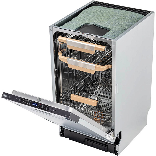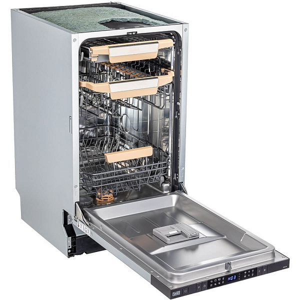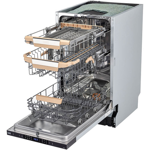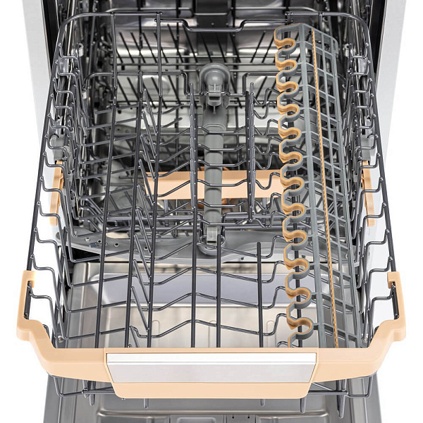 Три корзины позволят разместить посуду равномерно на всех уровнях, таким образом вода будет доставать до самых отдаленных «мертвых» углов и качество мытья будет выше.