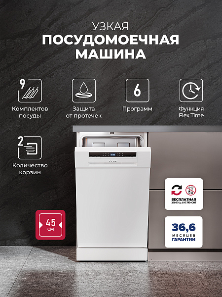 LEX DW4562N WH посудомоечная машина белый