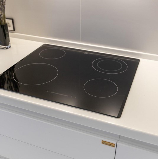 Индукционная поверхность работает за счет образовавшегося магнитного поля между катушкой, которая находится под стеклом, и посудой. При этом сама стеклокерамика нагревается за счет горячей посуды стоящей на ней. Она проста в уходе и безопасная для детей.