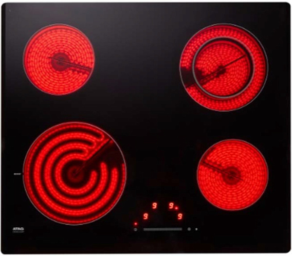 Электрическая варочная поверхность нагревается за счет нагревательного элемента под стеклом, он нагревает стекло и далее посуду. Если на электрическую варочную поверхность попадут частички пищи во время приготовления, они сгорят на ней и остатки прилипнут. Электрическая поверхность проблемна в уходе.