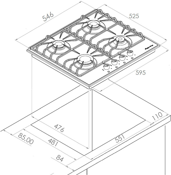 4 конфорки бренда Sabaf, разные по мощности и диаметру;
