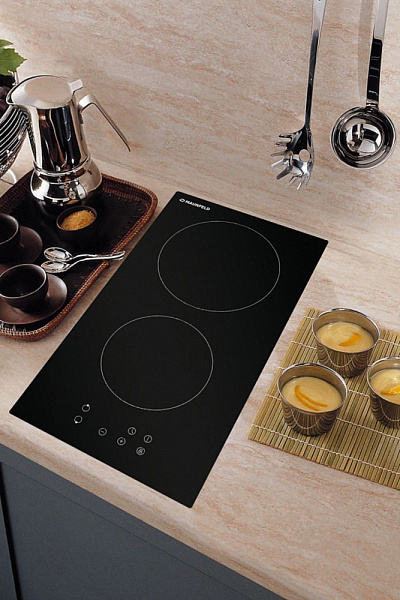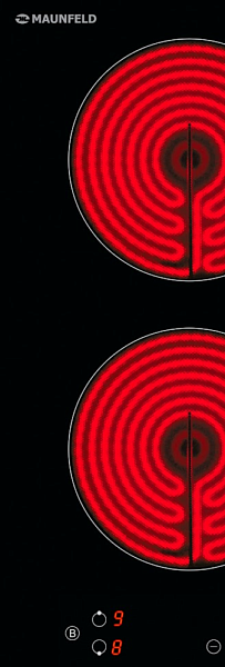 Индукционная поверхность работает за счет образовавшегося магнитного поля между катушкой, которая находится под стеклом, и посудой. При этом сама стеклокерамика нагревается за счет горячей посуды стоящей на ней. Она проста в уходе и безопасная для детей.