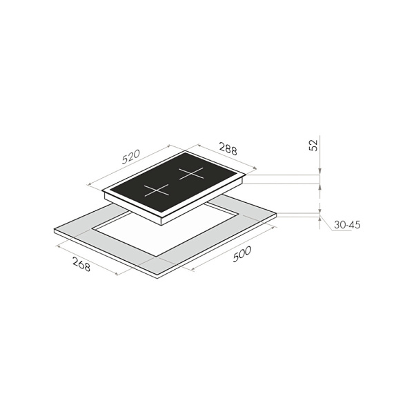 Размеры для встраивания (ШхГхВ), мм: 268 х 500