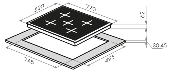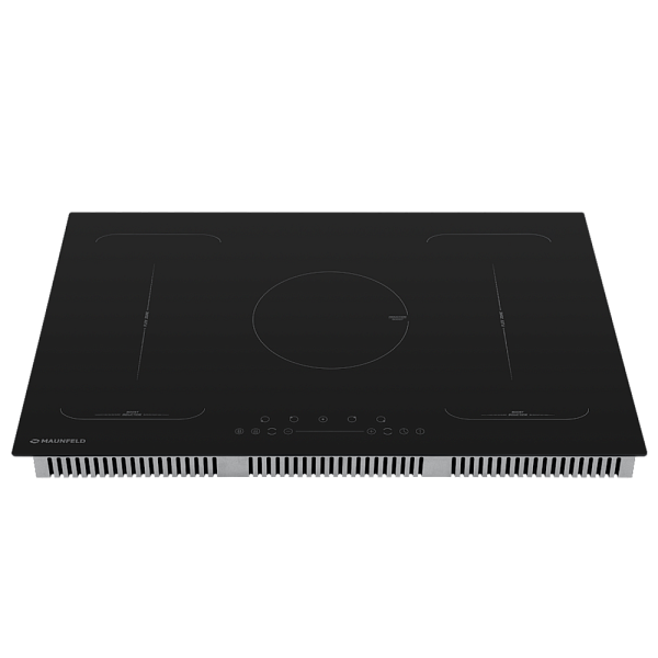 Индукционная поверхность работает за счет образовавшегося магнитного поля между катушкой, которая находится под стеклом, и посудой. При этом сама стеклокерамика нагревается за счет горячей посуды стоящей на ней. Она проста в уходе и безопасная для детей.