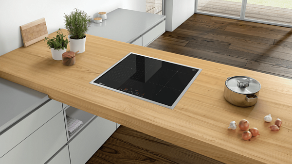 Индукционная поверхность работает за счет образовавшегося магнитного поля между катушкой, которая находится под стеклом, и посудой. При этом сама стеклокерамика нагревается за счет горячей посуды стоящей на ней. Она проста в уходе и безопасная для детей.