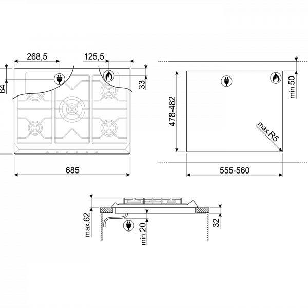 SMEG SRV876POGH варочная панель бежевый