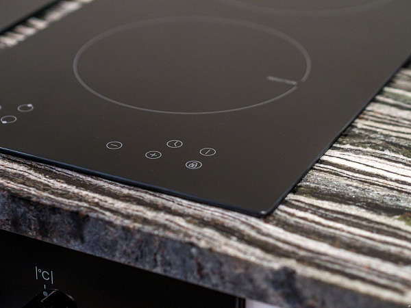 Индукционная поверхность работает за счет образовавшегося магнитного поля между катушкой, которая находится под стеклом, и посудой. При этом сама стеклокерамика нагревается за счет горячей посуды стоящей на ней. Она проста в уходе и безопасная для детей.