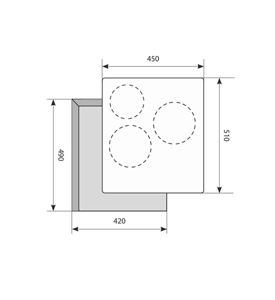 Одноконтурная конфорка: 1 х 1200 Вт (Ø 150 мм), 2 х 1800 Вт (Ø 185 мм)