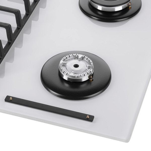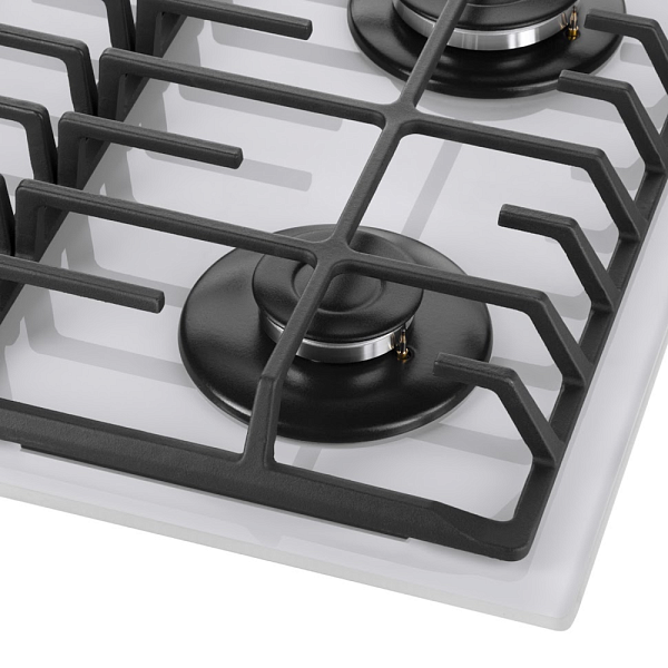 Газовая варочная панель Maunfeld EGHG.64.6CW/G — это сочетание функциональности и элегантного дизайна. Поверхность прибора выполнена из закаленного стекла белого цвета, что придает ему современный и стильный вид. Цвет фурнитуры — серебристый, что идеально вписывается в любой интерьер кухни. Решетки панели выполнены из чугуна, что обеспечивает их долговечность и надежность.