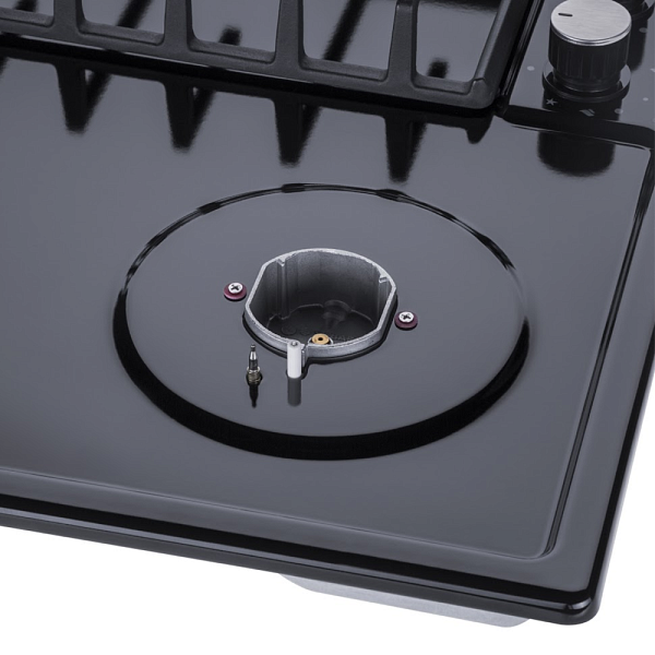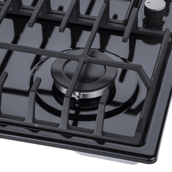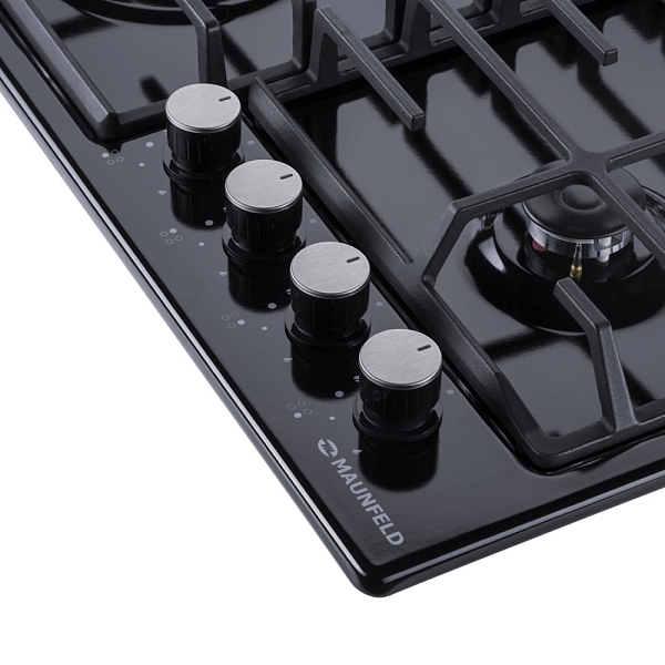 Варочная панель Maunfeld EGHE.64.6CB/G выполнена в черном цвете. Модель предусматривает в себе 4 газовых конфорки различной мощности, что позволяет комфортно готовить любые блюда. Электропожиг обеспечивает удобство эксплуатации — пламя зажигается простым поворотом переключателя, без зажигалок и спичек. Система «Газ-контроль» не допустит утечки, если огонь случайно погаснет.