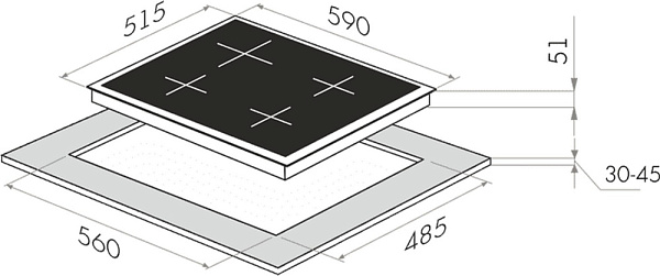 Индукционная поверхность работает за счет образовавшегося магнитного поля между катушкой, которая находится под стеклом, и посудой. При этом сама стеклокерамика нагревается за счет горячей посуды стоящей на ней. Она проста в уходе и безопасная для детей.