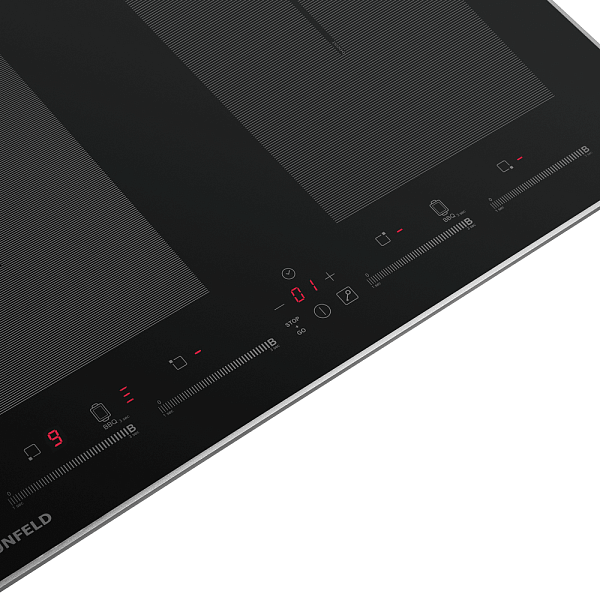 Устройство имеет девять ступеней мощности. Детектор диаметра посуды способствует точному нагреву выбранного пространства, что снижает потери тепла в окружающую среду и уменьшает расход энергии. За безопасную эксплуатацию отвечают: блокировка от детей и защита от перегрева. Первое не даст ребенку внести изменения в настройки системы. Второе препятствует преждевременному выводу из строя аппарата. Пауза Stop & Go позволит в любой момент приостановить работу и вернуться к процессу приготовления с исходной точки, когда вам будет удобно. Функция BBQ «барбекю» чем-то напоминает электрический гриль, для ее использования вам необходимо доукомплектовать панель специальным поддоном и можно наслаждаться сочным мясом, не выходя из дома. Индикатор остаточного тепла избавит от получения ожога по неосторожности, горячий участок будет гореть красным светом, предупреждая об опасности.