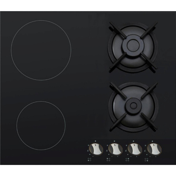 Комбинированная варочная поверхность, оснащенная 2 турецкими газовыми конфорками ALBEK (с матовыми крышками) и 2 электрическими конфорками, автоматической системой поджига, газ-контролем и чугунными решётки (круглые), подходит для сжиженного/ натурального газа (набор форсунок прилагается). Модель имеет 9 уровней мощности, позволяющие подобрать подходящую температуру для приготовления блюд. Рабочая поверхность выполнена из закаленного стекла. Модель оснащена автоматическим отключением-таймер, который дает вам возможность запрограммировать время выключения любой конфорки, с точностью до минуты, функцией защиты от детей и защитой от перегрева. Мощность конфорок: электрические: 1,2кВт и 1,8 кВт; Газовые: 1 кВт и 2,6 кВт. Размеры встраивания 560х485.