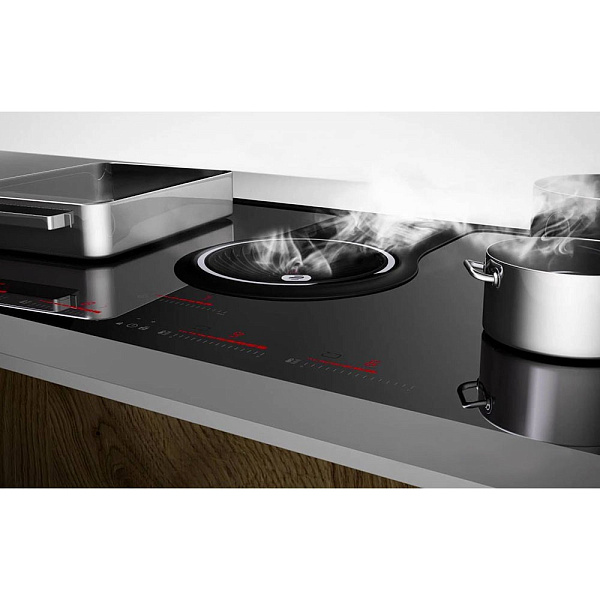 Индукционная поверхность работает за счет образовавшегося магнитного поля между катушкой, которая находится под стеклом, и посудой. При этом сама стеклокерамика нагревается за счет горячей посуды стоящей на ней. Она проста в уходе и безопасная для детей.