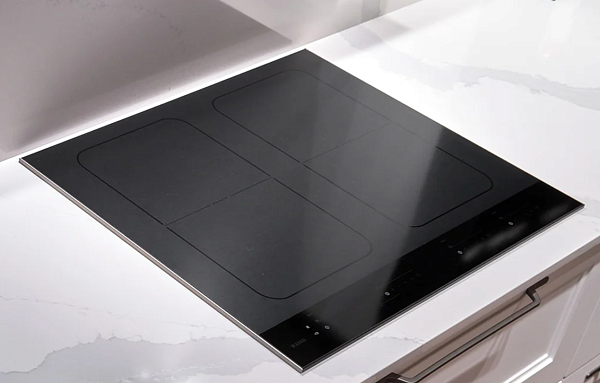 Индукционная поверхность работает за счет образовавшегося магнитного поля между катушкой, которая находится под стеклом, и посудой. При этом сама стеклокерамика нагревается за счет горячей посуды стоящей на ней. Она проста в уходе и безопасная для детей.
