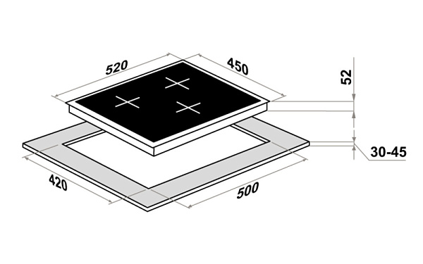 Индукционная поверхность работает за счет образовавшегося магнитного поля между катушкой, которая находится под стеклом, и посудой. При этом сама стеклокерамика нагревается за счет горячей посуды стоящей на ней. Она проста в уходе и безопасная для детей.