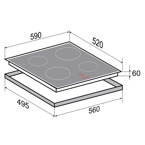 Цвет белый, Ширина 59 см, Размеры 590х520 мм, Размеры для встраивания 565х495 мм, Гарантия 3+2, Страна производства Китай.