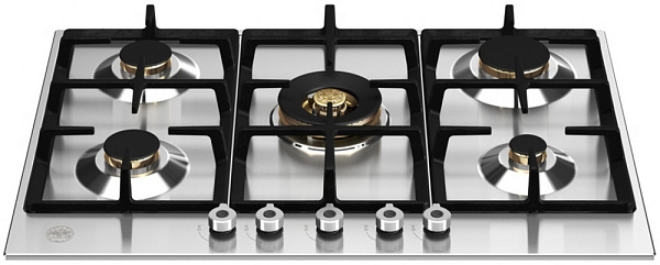 В этой модели Bertazzoni пять горелок разной мощности, поэтому удобно готовить одновременно разные блюда. В центре находится конфорка WOK с двумя рядами пламени, которая нагревает сильнее всего и позволяет за короткое время при высокой температуре обработать продукты.