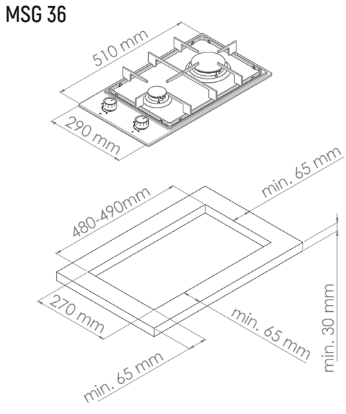 MONSHER MSG 36 Noir газовая варочная поверхность домино