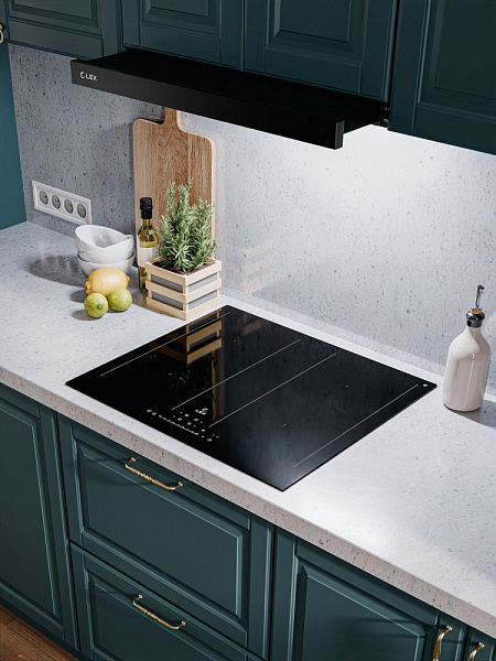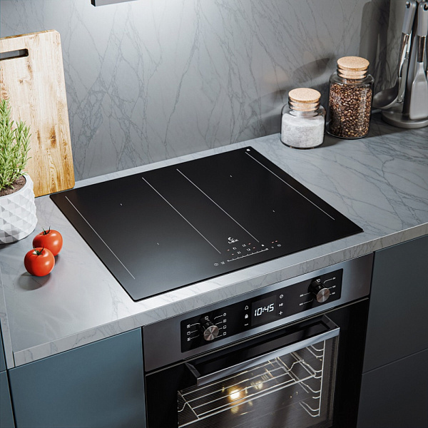 Индукционная поверхность работает за счет образовавшегося магнитного поля между катушкой, которая находится под стеклом, и посудой. При этом сама стеклокерамика нагревается за счет горячей посуды стоящей на ней. Она проста в уходе и безопасная для детей.