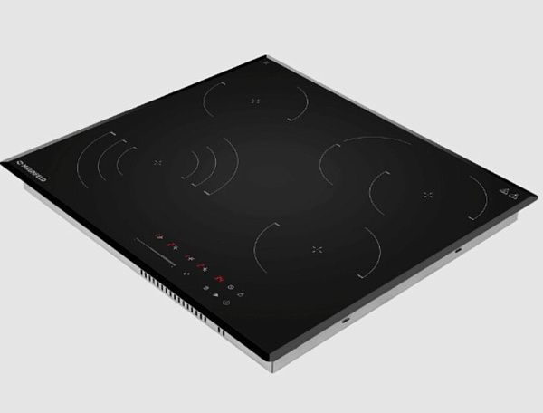 Индукционная поверхность работает за счет образовавшегося магнитного поля между катушкой, которая находится под стеклом, и посудой. При этом сама стеклокерамика нагревается за счет горячей посуды стоящей на ней. Она проста в уходе и безопасная для детей.