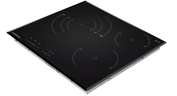 Индукционная поверхность работает за счет образовавшегося магнитного поля между катушкой, которая находится под стеклом, и посудой. При этом сама стеклокерамика нагревается за счет горячей посуды стоящей на ней. Она проста в уходе и безопасная для детей.