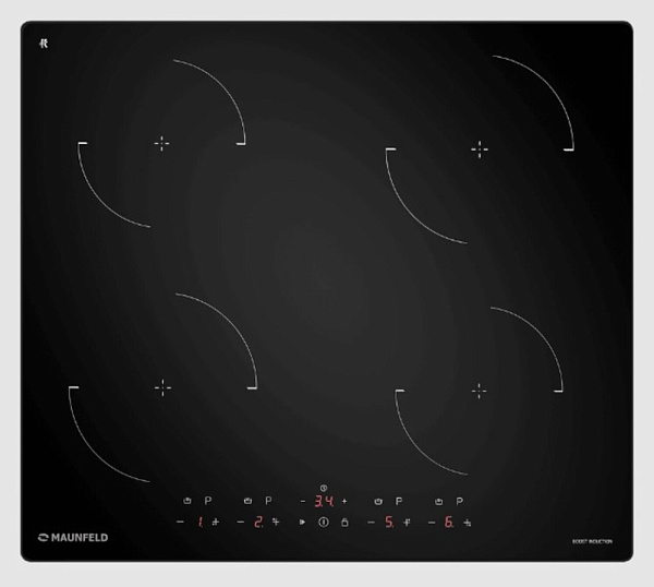 Индукционная поверхность работает за счет образовавшегося магнитного поля между катушкой, которая находится под стеклом, и посудой. При этом сама стеклокерамика нагревается за счет горячей посуды стоящей на ней. Она проста в уходе и безопасная для детей.