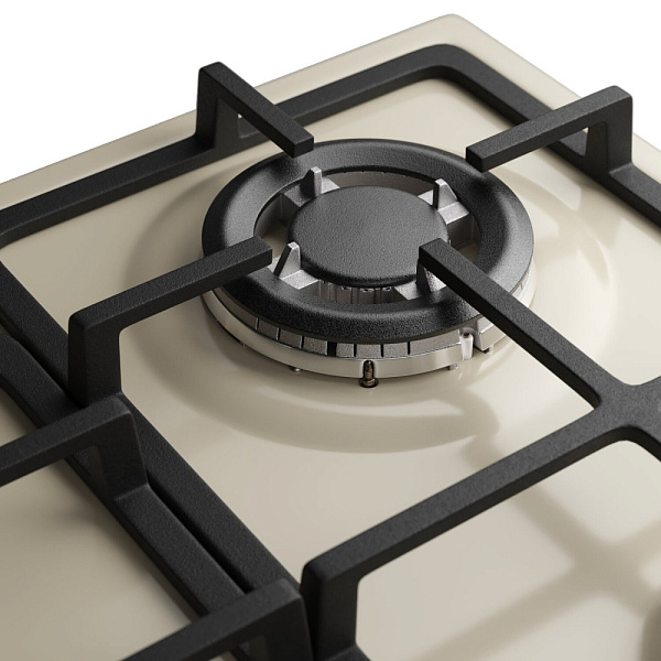 Варочная панель оснащена автоматическим электроподжигом, что обеспечивает удобство и безопасность использования. Газ-контроль конфорок гарантирует автоматическое отключение подачи газа при случайном угасании пламени.