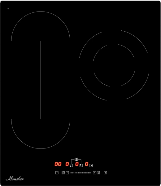 Индукционная поверхность работает за счет образовавшегося магнитного поля между катушкой, которая находится под стеклом, и посудой. При этом сама стеклокерамика нагревается за счет горячей посуды стоящей на ней. Она проста в уходе и безопасная для детей.