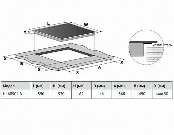 Индукционная поверхность работает за счет образовавшегося магнитного поля между катушкой, которая находится под стеклом, и посудой. При этом сама стеклокерамика нагревается за счет горячей посуды стоящей на ней. Она проста в уходе и безопасная для детей.