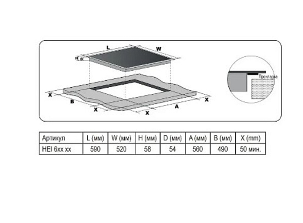 Варочную панель можно комбинировать с аналогичными по ширине духовыми шкафами Evelux.