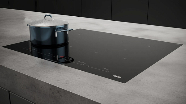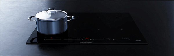 Индукционная поверхность работает за счет образовавшегося магнитного поля между катушкой, которая находится под стеклом, и посудой. При этом сама стеклокерамика нагревается за счет горячей посуды стоящей на ней. Она проста в уходе и безопасная для детей.