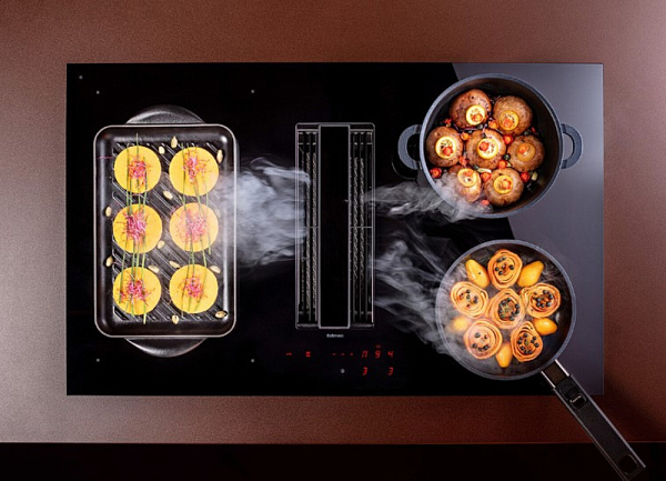Индукционная поверхность работает за счет образовавшегося магнитного поля между катушкой, которая находится под стеклом, и посудой. При этом сама стеклокерамика нагревается за счет горячей посуды стоящей на ней. Она проста в уходе и безопасная для детей.