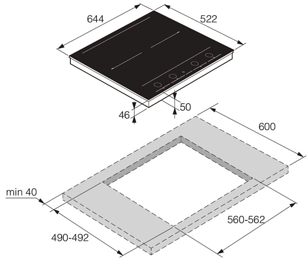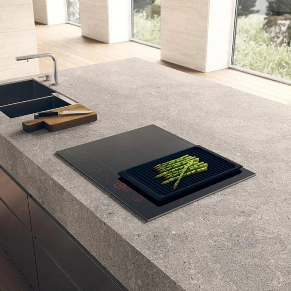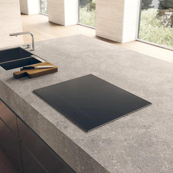 Индукционная поверхность работает за счет образовавшегося магнитного поля между катушкой, которая находится под стеклом, и посудой. При этом сама стеклокерамика нагревается за счет горячей посуды стоящей на ней. Она проста в уходе и безопасная для детей.