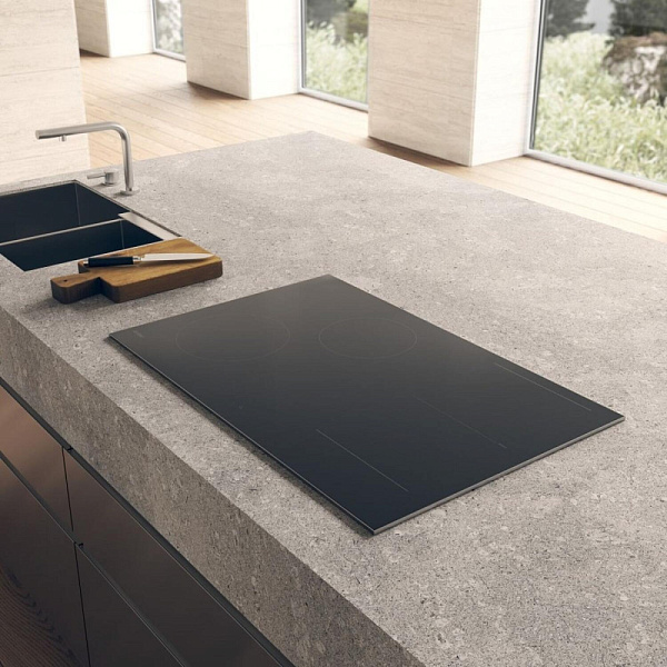 Индукционная поверхность работает за счет образовавшегося магнитного поля между катушкой, которая находится под стеклом, и посудой. При этом сама стеклокерамика нагревается за счет горячей посуды стоящей на ней. Она проста в уходе и безопасная для детей.