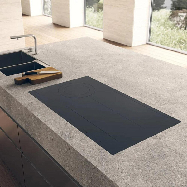 Индукционная поверхность работает за счет образовавшегося магнитного поля между катушкой, которая находится под стеклом, и посудой. При этом сама стеклокерамика нагревается за счет горячей посуды стоящей на ней. Она проста в уходе и безопасная для детей.