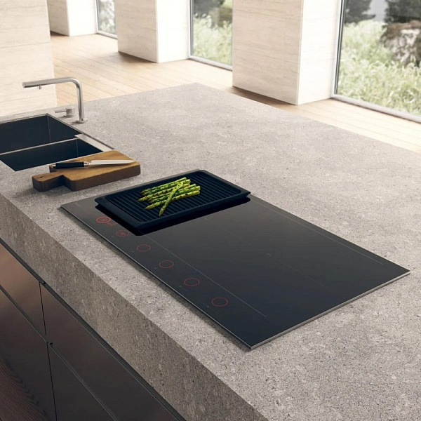 Индукционная поверхность работает за счет образовавшегося магнитного поля между катушкой, которая находится под стеклом, и посудой. При этом сама стеклокерамика нагревается за счет горячей посуды стоящей на ней. Она проста в уходе и безопасная для детей.