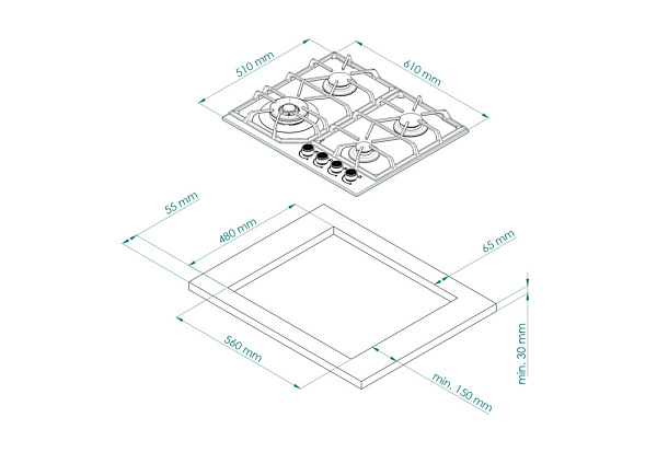 Индукционная поверхность работает за счет образовавшегося магнитного поля между катушкой, которая находится под стеклом, и посудой. При этом сама стеклокерамика нагревается за счет горячей посуды стоящей на ней. Она проста в уходе и безопасная для детей.