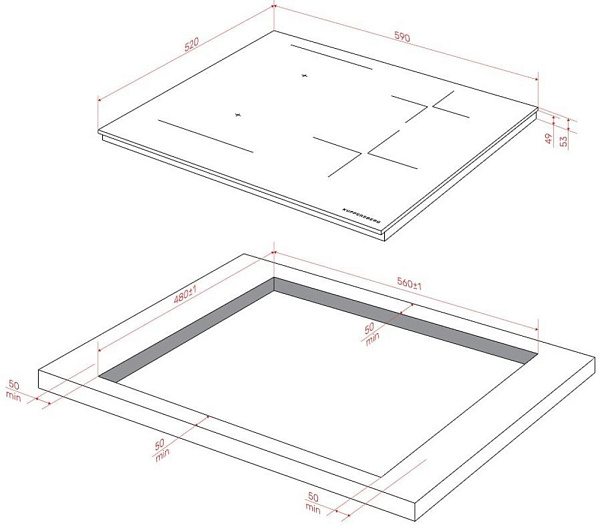 Индукционная поверхность работает за счет образовавшегося магнитного поля между катушкой, которая находится под стеклом, и посудой. При этом сама стеклокерамика нагревается за счет горячей посуды стоящей на ней. Она проста в уходе и безопасная для детей.