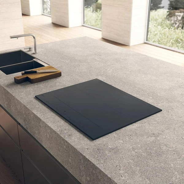Индукционная поверхность работает за счет образовавшегося магнитного поля между катушкой, которая находится под стеклом, и посудой. При этом сама стеклокерамика нагревается за счет горячей посуды стоящей на ней. Она проста в уходе и безопасная для детей.