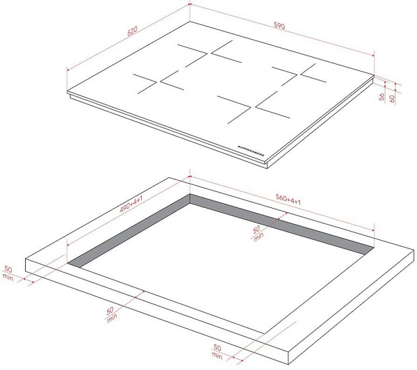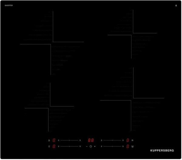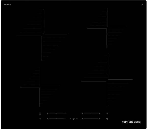 Размеры панели: ширина — 59 см, высота — 6 см, глубина — 52 см. Мощность подключения — 7,2 кВт. В наличии четыре конфорки с разным диаметром и мощностью. Панель производится в Китае и входит в коллекцию High-Tech.