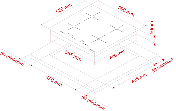 Индукционная поверхность работает за счет образовавшегося магнитного поля между катушкой, которая находится под стеклом, и посудой. При этом сама стеклокерамика нагревается за счет горячей посуды стоящей на ней. Она проста в уходе и безопасная для детей.
