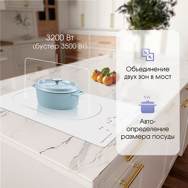 • Автоматическое определение размера посуды и адаптация мощности