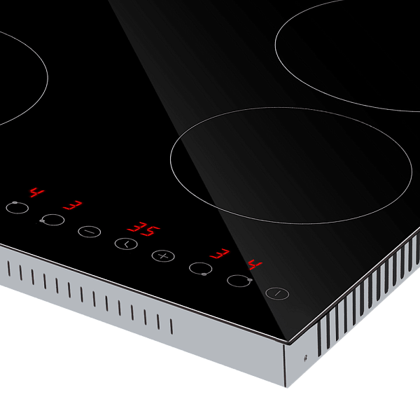 Hi-Light конфорки, установленные в этой модели, очень быстро нагреваются (за 3-7 секунд). Две конфорки (d=165 мм) мощностью по 1200 Вт и 2 конфорки (d=200 мм) мощностью по 2000 Вт.
