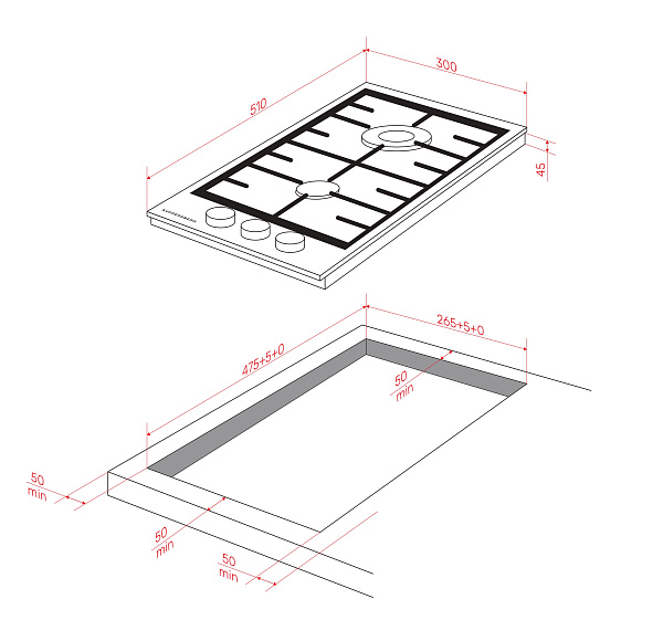 Панель обладает рядом полезных функций, которые обеспечивают безопасность и удобство использования: автоматический электроподжиг и газ-контроль конфорок. Толщина закалённого стекла составляет 8 мм, что гарантирует его прочность и термоустойчивость. Длина сетевого шнура — 95 см. Варочная панель имеет компактные размеры: ширина — 30 см, высота — 5,2 см, глубина — 51 см, относится к коллекции High-Tech.