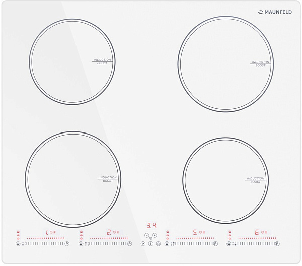 Индукционная варочная панель Маунфилд CVI594SWH оснащена четырьмя конфорками разной мощности и диаметра. Каждая имеет 9 степеней нагрева, благодаря чему можно точно настроить температуру приготовления в соответствии с вашими предпочтениями и требованиями рецепта. Встроенная функция Booster позволяет на определенное время активировать максимальную мощность для быстрого разогрева или обжарки продуктов. Также можно включить таймер — после того, как пройдет выбранное вами время готовки, конфорка автоматически выключится.