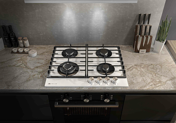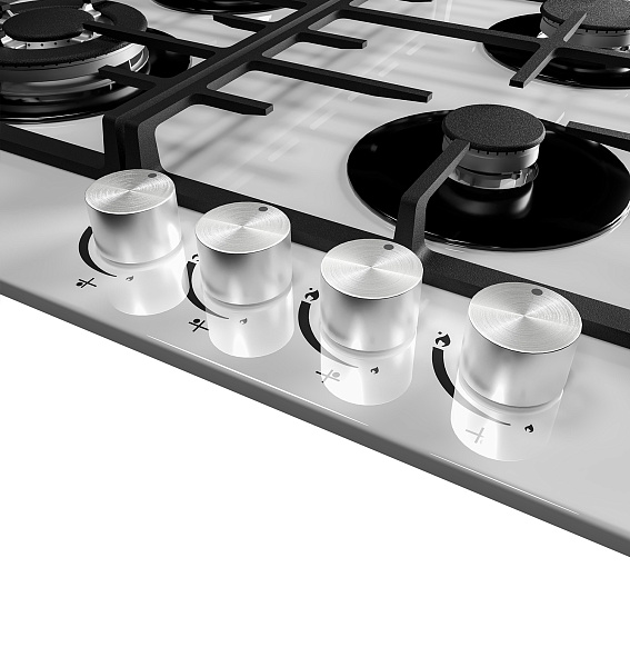 Простое управление с автоматическим розжигом реализовано посредством надежных механических переключателей. Если отсутствует электричество, то конфорки можно аккуратно поджечь спичкой или зажигалкой, предварительно подав на них газ. Зоны подогрева разделены на четыре условные части, что позволяет одновременно готовить несколько блюд. Свободного пространства для этого достаточно.