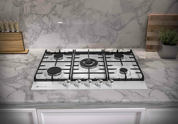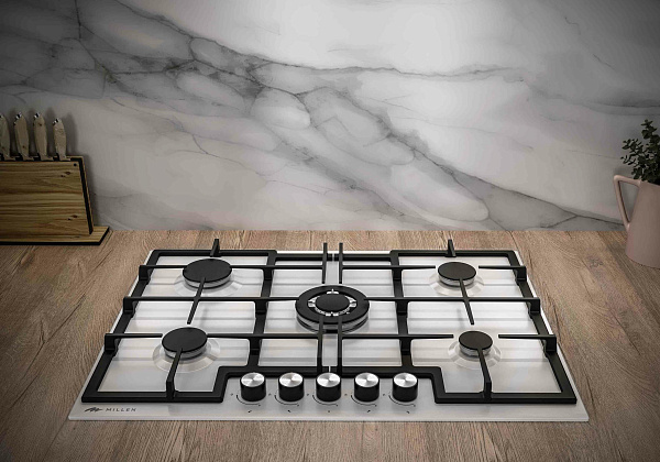 Всего пользователю доступно пять конфорок, отличающихся диаметром и мощностью. Специальная WOK-конфорка по центру позволяет готовить в домашних условиях любые блюда азиатской кухни. Она создает сразу несколько колец пламени и моментально прогревает даже объемные кастрюли. Четыре другие конфорки работают в стандартном режиме. Если пламя погаснет, то подача газа будет прекращена в автоматическом режиме, что существенно повышает безопасность.